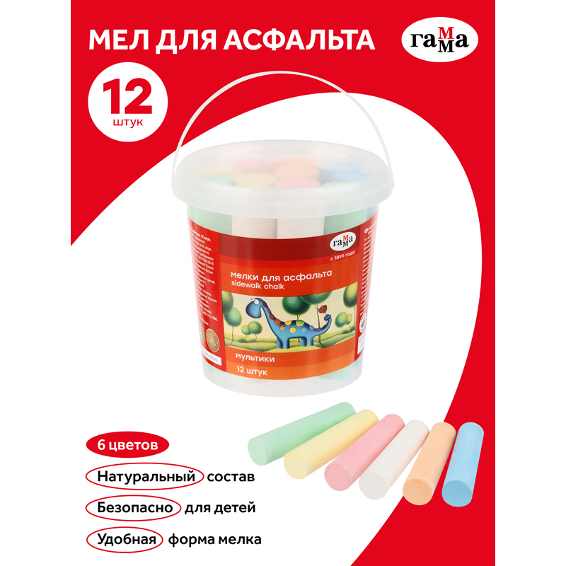 Мелки для асфальта Гамма "Мультики" цветные, 12шт., круглые, пластиковое ведро NEW [171220212]