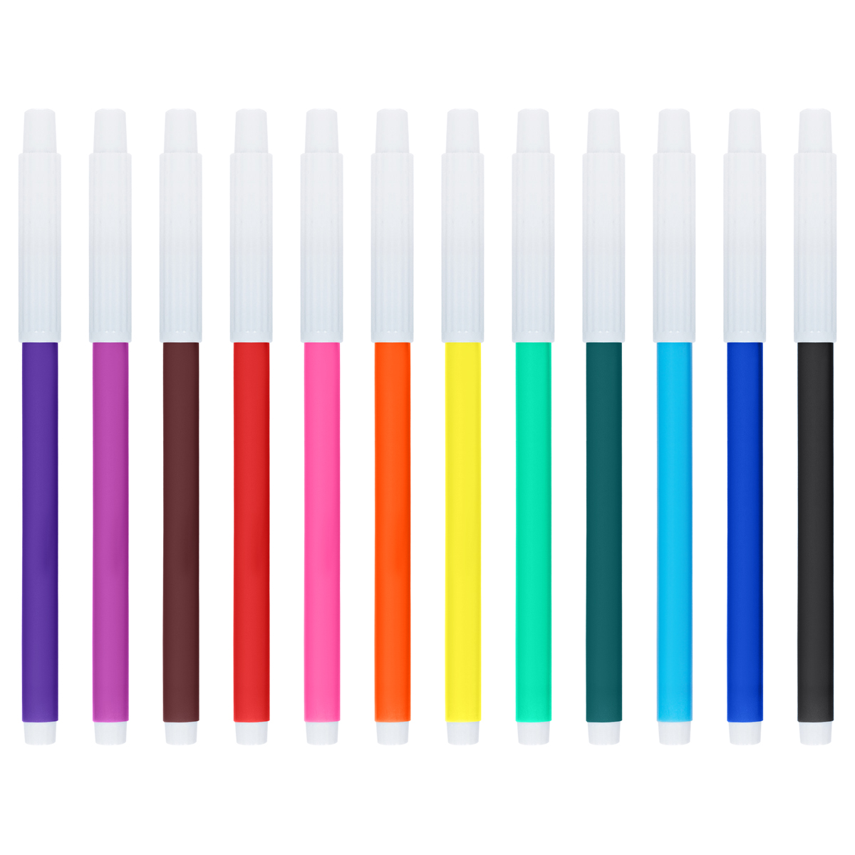 Фломастеры ArtSpace серии «Рассказы» представлены с чернилами ярких цветов и невентилируемым колпачком белого цвета. Толщина линии письма составляет 1,0 мм. В наборе 12 ярких цветов. Тип наконечника – конический. Несмываемые фломастеры на водной основе нетоксичны. Набор фломастеров упакован в ПВХ-пакет с европодвесом и ярким вкладышем.• Количество цветов: 12;
