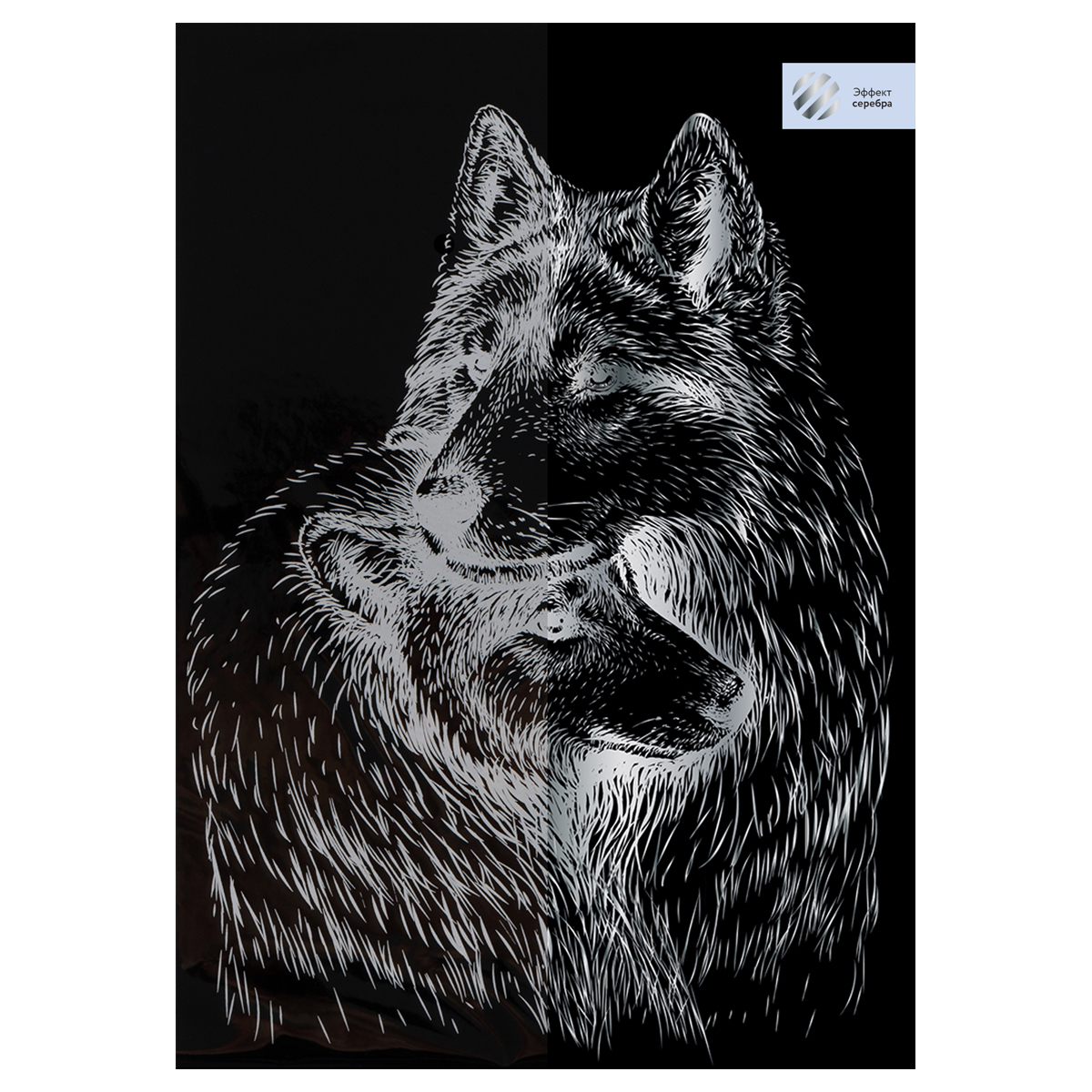 Гравюра с эффектом серебра ТРИ СОВЫ "Волки", А4
