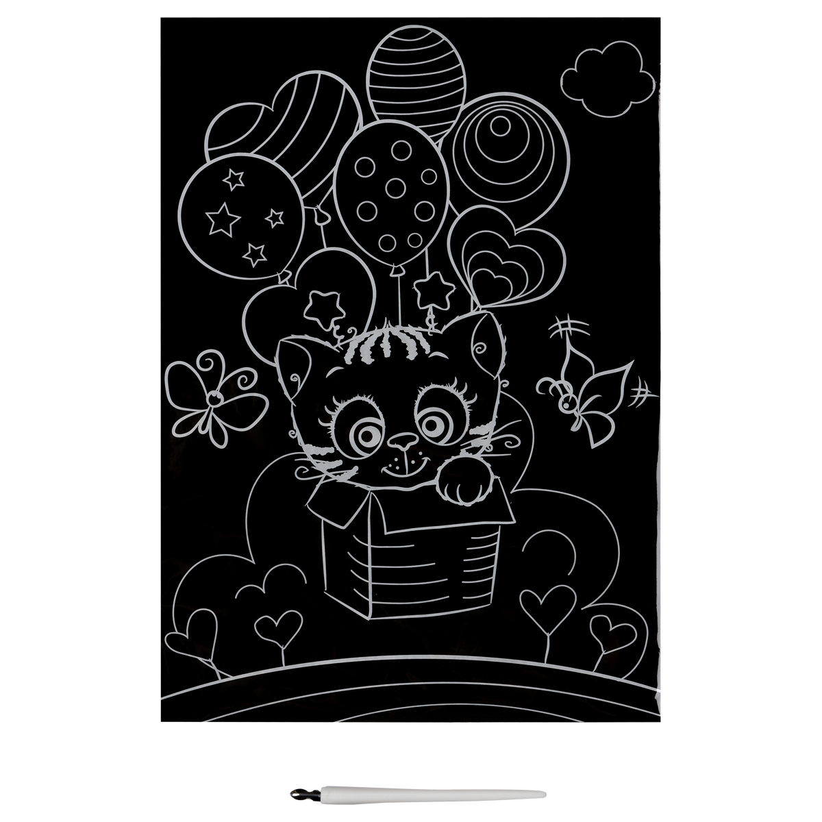 Гравюра с мультицветной основой «ТРИ СОВЫ» «Котик в коробке»— занимательный, увлекательный и несложный для ребенка вид творчества, который научит аккуратности и усидчивости. Состав набора: основа формата А4(21*29,7 см) из картона, штихель, крепление на стену.Работа над гравюрой развивает не только внимательность, но и мелкую моторику рук, что способствует формированию красивого почерка. Создавая гравюру с милым котиком в коробке, ребенок может добавлять на картинку новые элементы, штрихи и линии, не ограничивая свою фантазию и изобретая собственные сюжеты. Завершенная работа станет замечательным украшением интерьера или отличным подарком кому-то из близких.