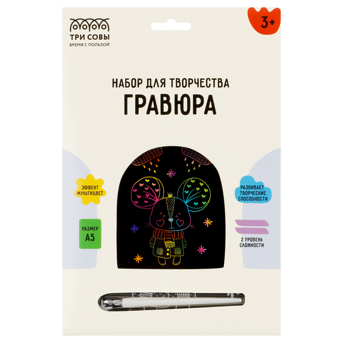 Гравюра с мультицветной основой «ТРИ СОВЫ» «Осень»— занимательный, увлекательный и несложный для ребенка вид творчества, который научит аккуратности и усидчивости. Состав набора: основа формата А5(14,8*21 см) из картона, штихель, крепление на стену.Работа над гравюрой развивает не только внимательность, но и мелкую моторику рук, что способствует формированию красивого почерка. Создавая гравюру, ребенок может добавлять на картинку новые элементы, штрихи и линии, не ограничивая свою фантазию и изобретая собственные сюжеты. Завершенная работа станет замечательным украшением интерьера или отличным подарком кому-то из близких.