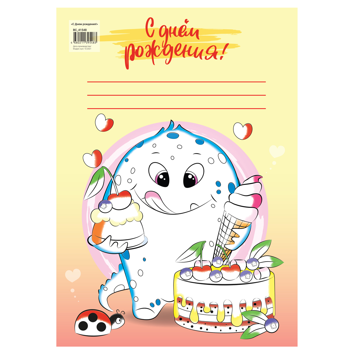 Аппликация из пуговиц Мульти-Пульти "С Днем рождения!", 21*29,5см, с раскраской, европодвес [BC_41548]