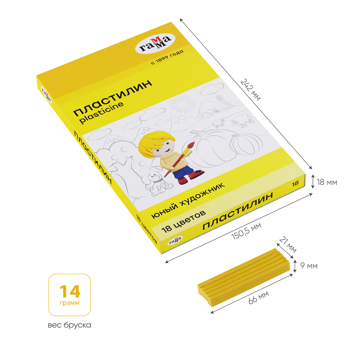 Пластилин Гамма "Юный художник", 18 цветов, со стеком [280047]